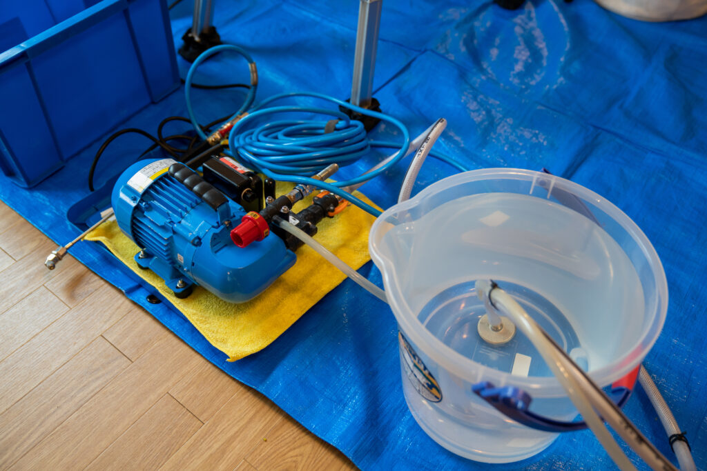 実績紹介 エアコンクリーニング ご家庭の壁掛けエアコンのクリーニングをご依頼いただきました。長期間の使用により、内部にカビやホコリが蓄積しており、吹き出し口には黒い汚れが見られる状態でした。分解後、専用洗剤と高圧洗浄機を使用して内部までしっかり洗浄し、見えない部分の汚れまで徹底的に除去いたしました。作業後はニオイも改善され、風もスッキリとした状態に。お客様からも「空気が全然違う」とご満足いただきました。